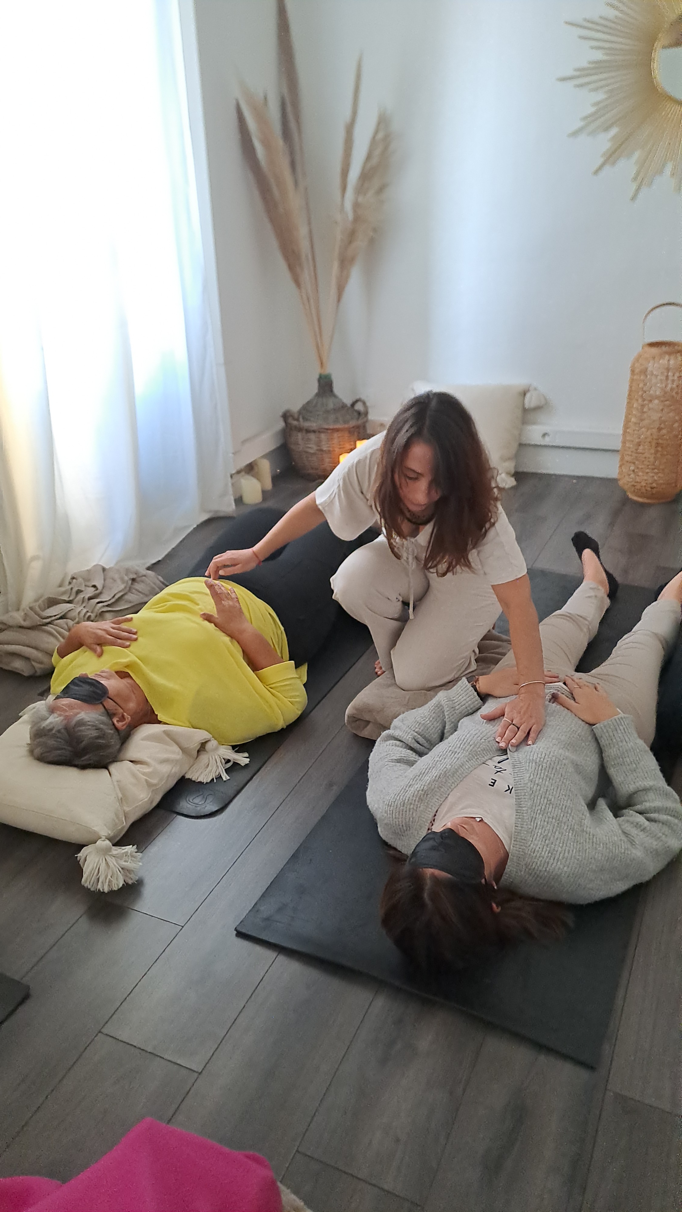 En individuel, l’espace devient un cocon personnalisé où tu peux explorer tes ressentis en toute sécurité, pleinement guidé.